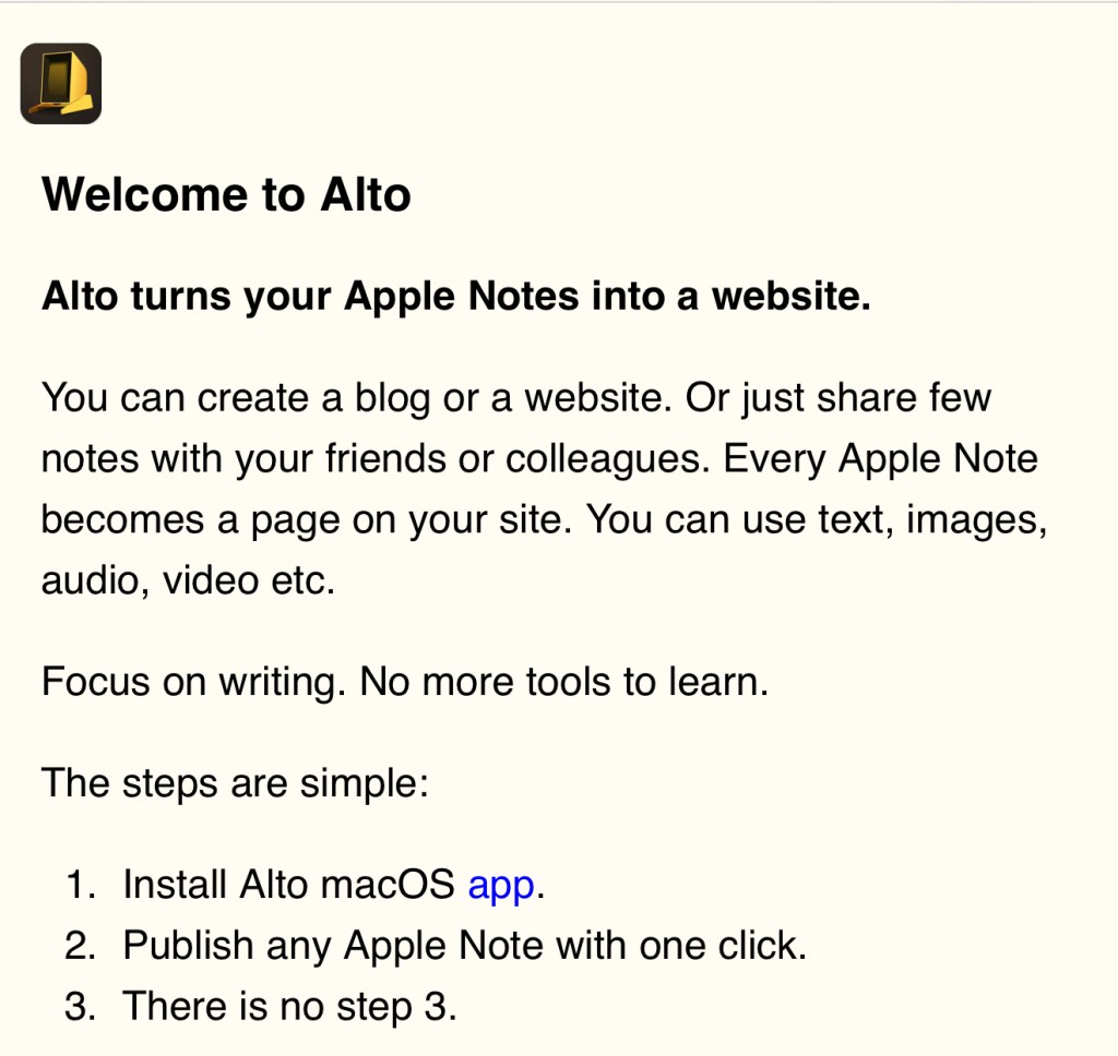 You can create a blog or a website. Or just share few notes with your friends or colleagues. Every Apple Note becomes a page on your site. You can use text, images, audio, video etc.
