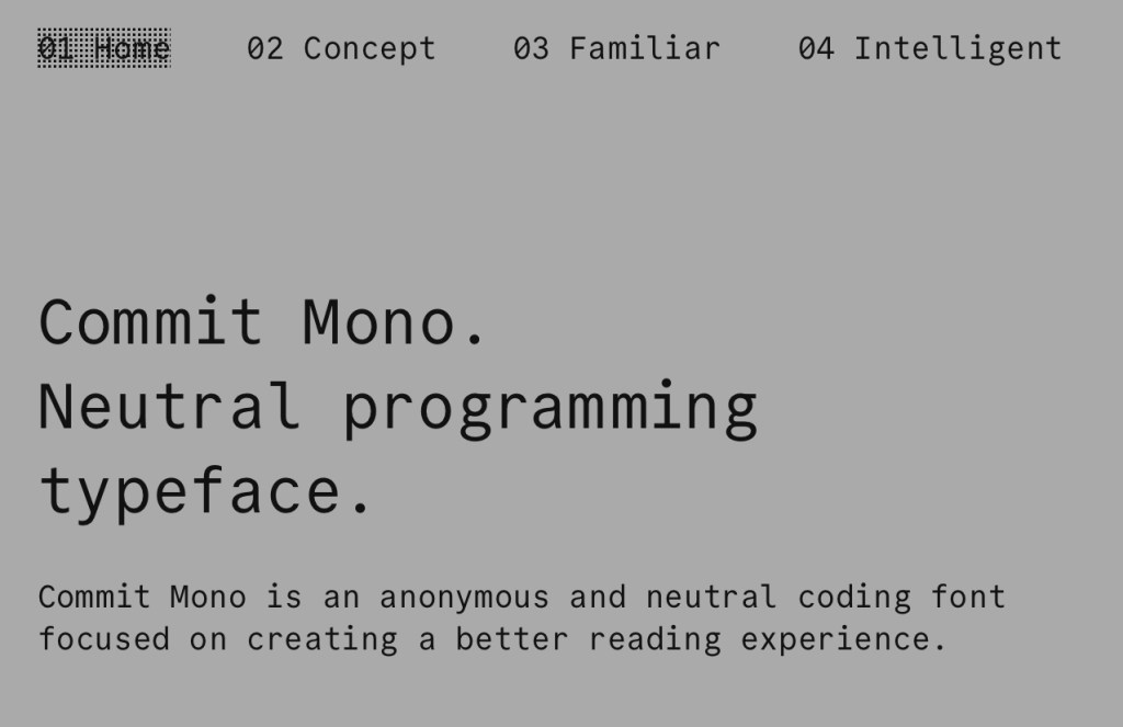 “Commit Mono is an anonymous and neutral coding font focused on creating a better reading experience.