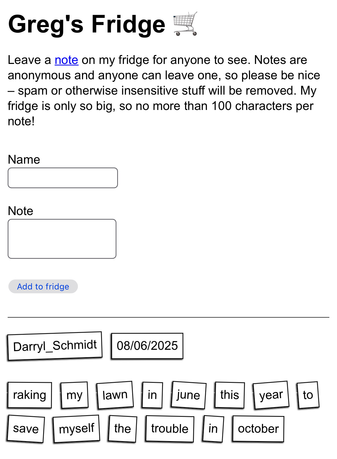 Greg’s Fridge – Leave a note on my fridge for anyone to see.