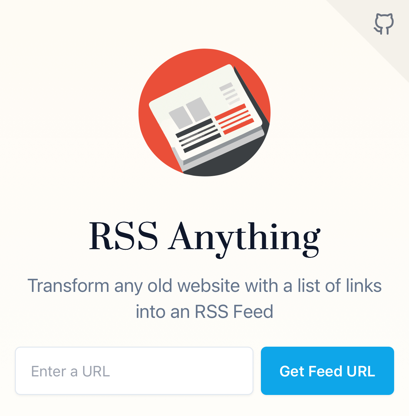 RSS Anything — Transform any old website with a list of links into an RSS Feed. By DiffBot on GitHub.