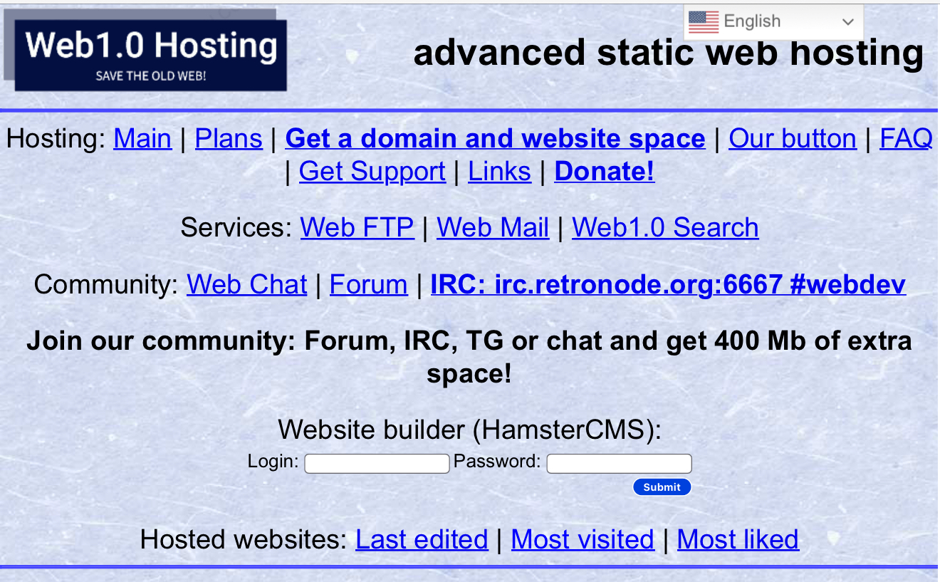Hosting of modern websites and the use of modern technologies are also permitted. There is also a search engine, web mail and web chat, working on both modern and legacy systems.