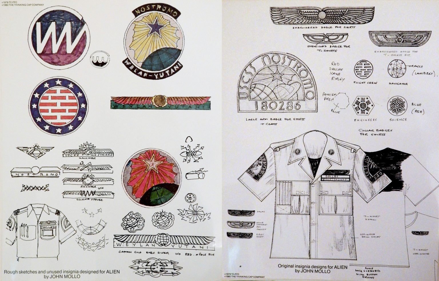 Just love finding gems such as these original Nostromo Crew Badges & Insignia Sketches by Ron Cobb & John Mollo for the Alien (1979) movie.