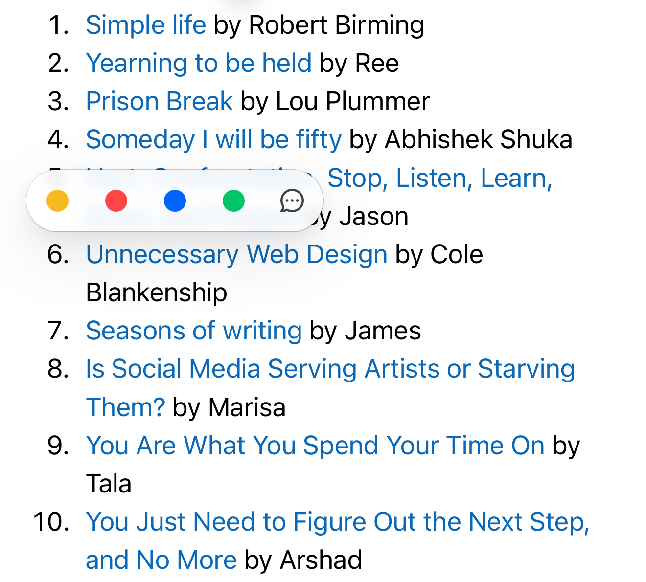 Here’s an image of the first 10 bloggers, and their respective post: