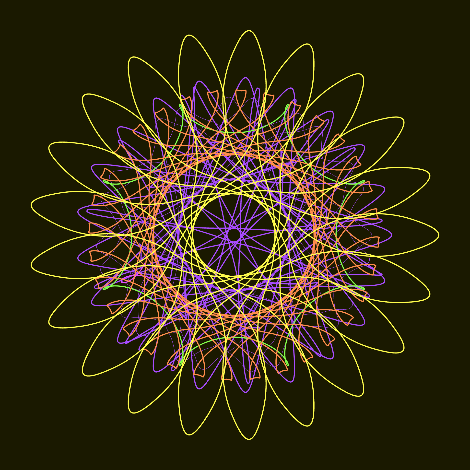 Inspired by the old spirograph toy, but not constrained by its practicalities.